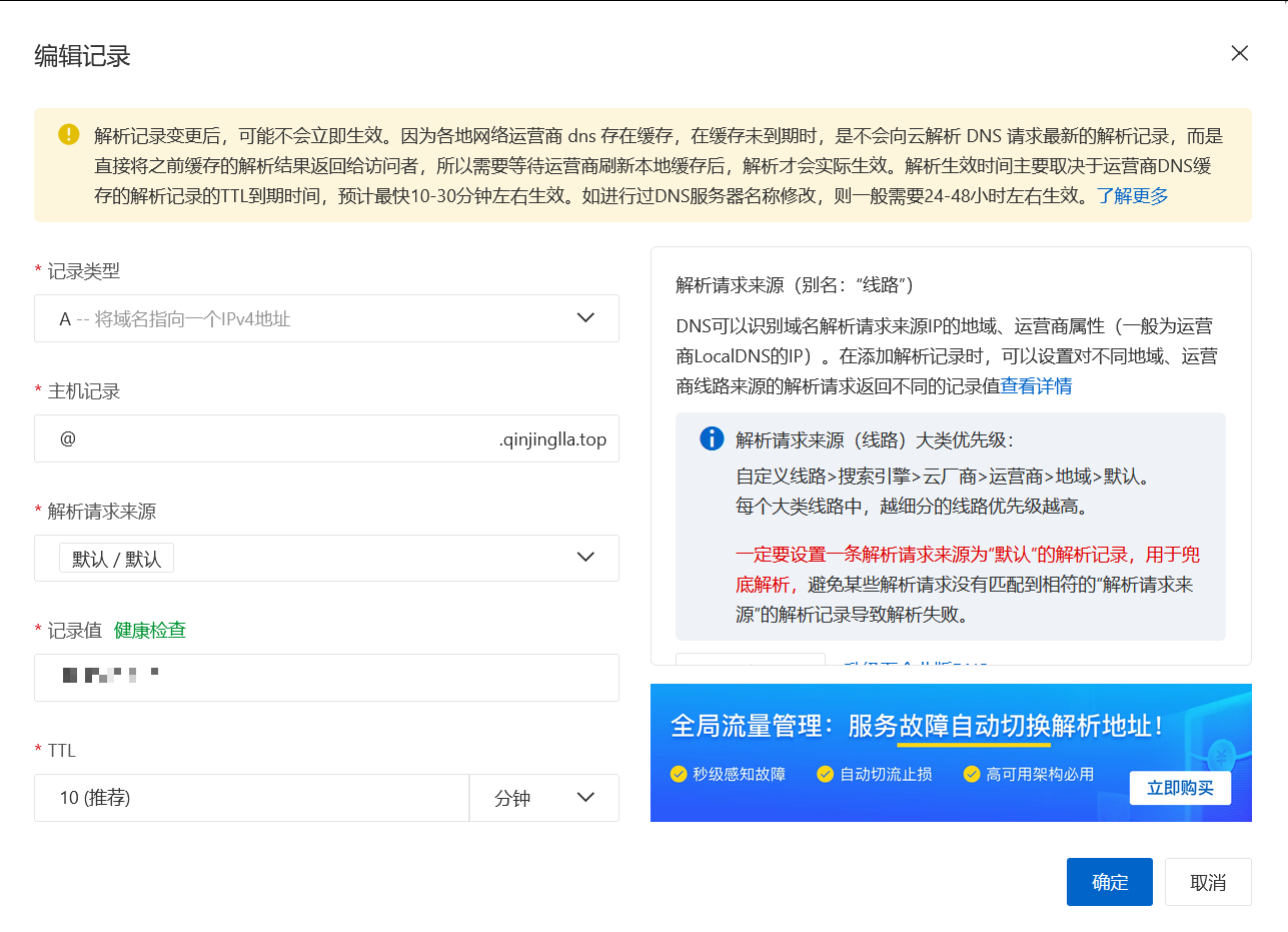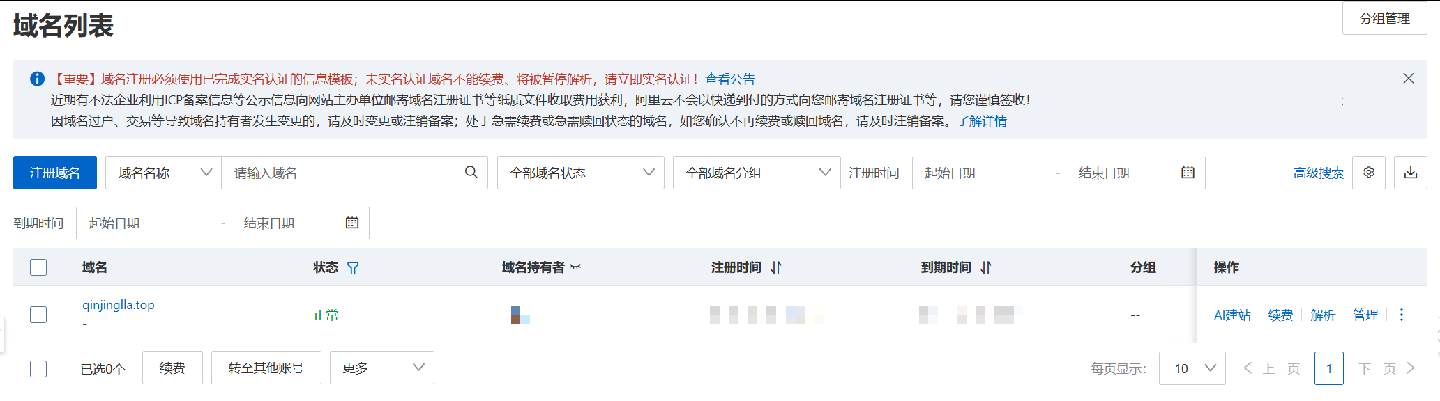 购买完毕可进入域名控制台,点击解析,为你的域名创建解析设置