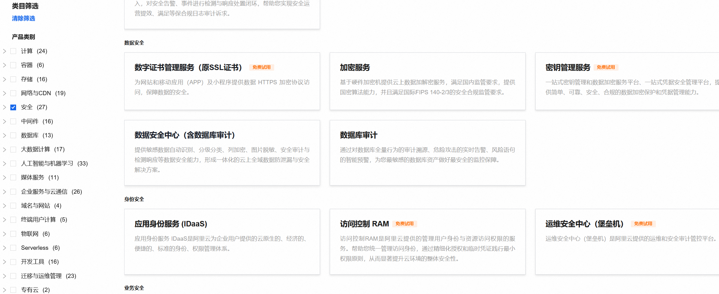 同样,阿里云也提供了个人SSL证书免费签发的服务,具体位置:安全-数据安全-数字证书管理服务。