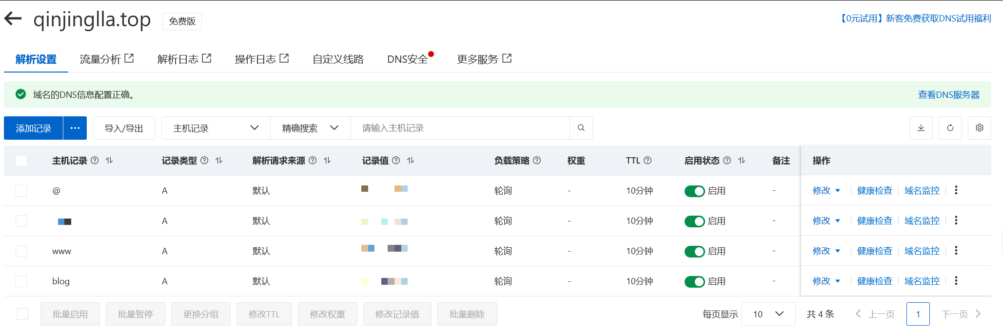 首先来到阿里云域名控制台,进入解析控制台,点击添加记录,新增一条如:记录类型:A,主机记录:blog(任意值均可)